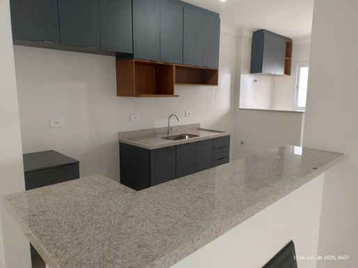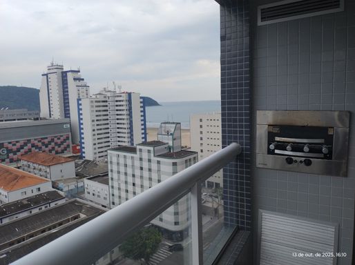 Apartamento bem distribuido com 73 de área util, possui 2 dormitórios sendo 1 suite, wc social, sacada gourmet com churrasqueira, sala de jantar, banheiros com armario, cozinha com armario, gás encanado, box blindex, vista para o mar, 2 vaga de garagem.