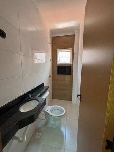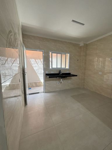 São 2 dormitórios, wc social, lavabo, cozinha conceito aberto e área de serviço e churrasqueira.