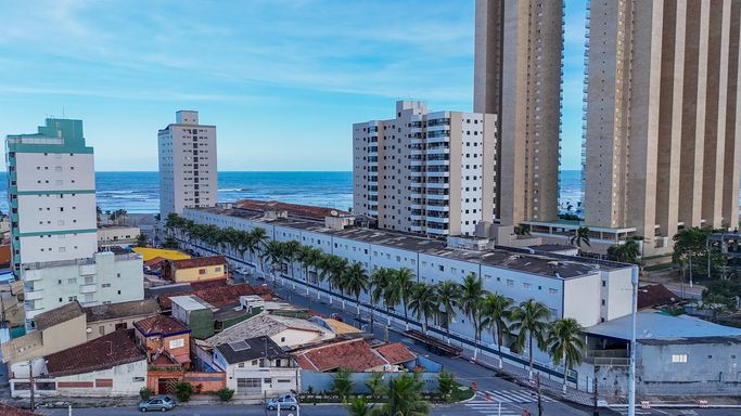 Kitnet ampla e bem arejada, podendo ser dividida, prédio passando por algumas melhorias que valorizarão ainda mais o imóvel, além disso a poucos metros será o Shopping Vilamar que as obras já iniciaram, além do parque municipal Parque Nova Mirim, excelente para veraneio ou moradia.