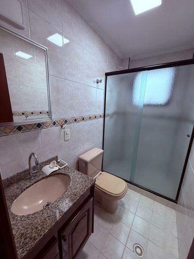 Apto 1 dormitório amplo, sala dois ambientes com sacada, cozinha com planejados, wc com box e gabinete, área de serviço com armário.