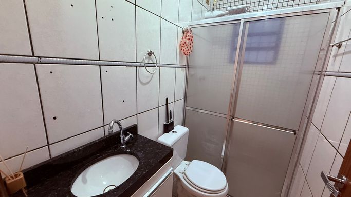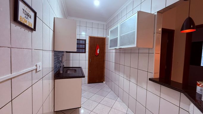 Condominio com 6 casas, sendo a casa a última com seu quintal individual que possui churrasqueira a carvão, sala ampla, cozinha americana com armários, wc com boc e dormitório amplo e arejado.